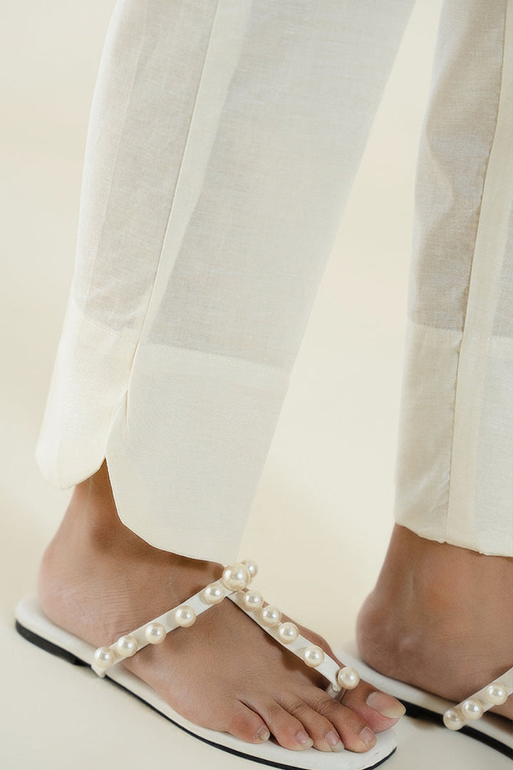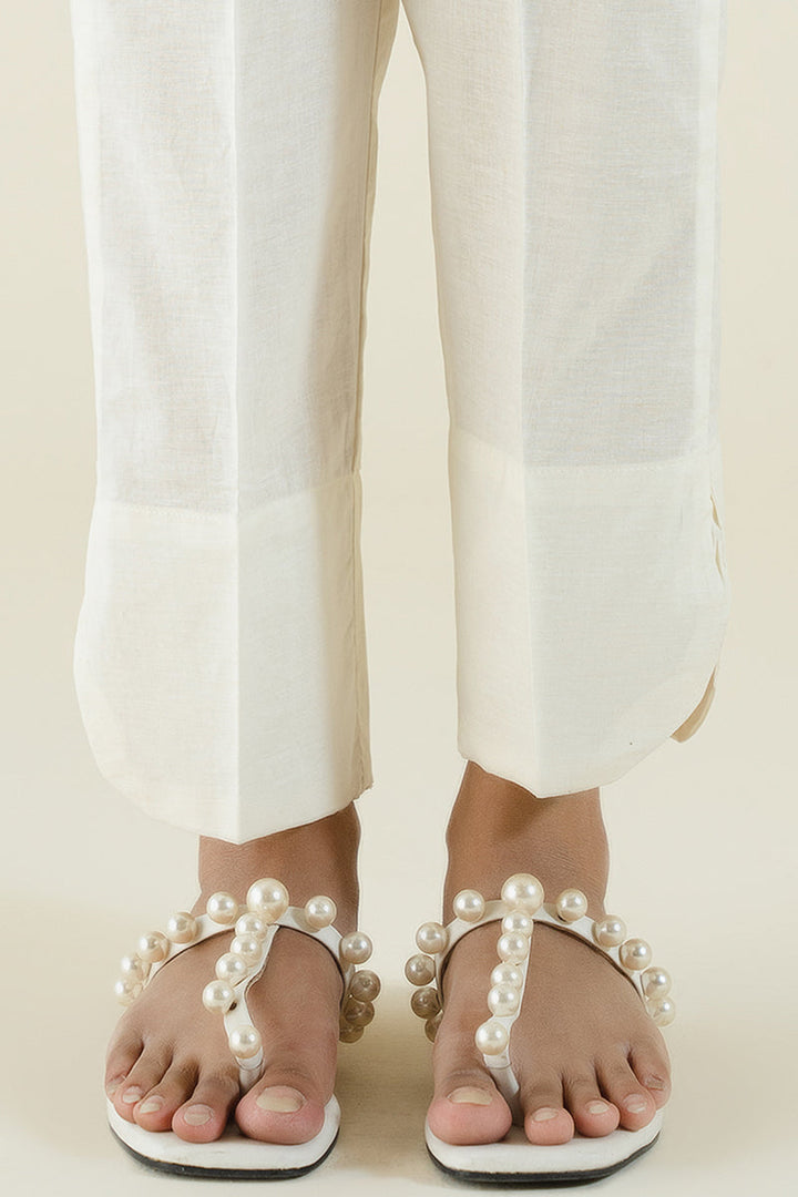 CAMBRIC SIDE SLIT DETAIL STRAIGHT FITTED PANTS