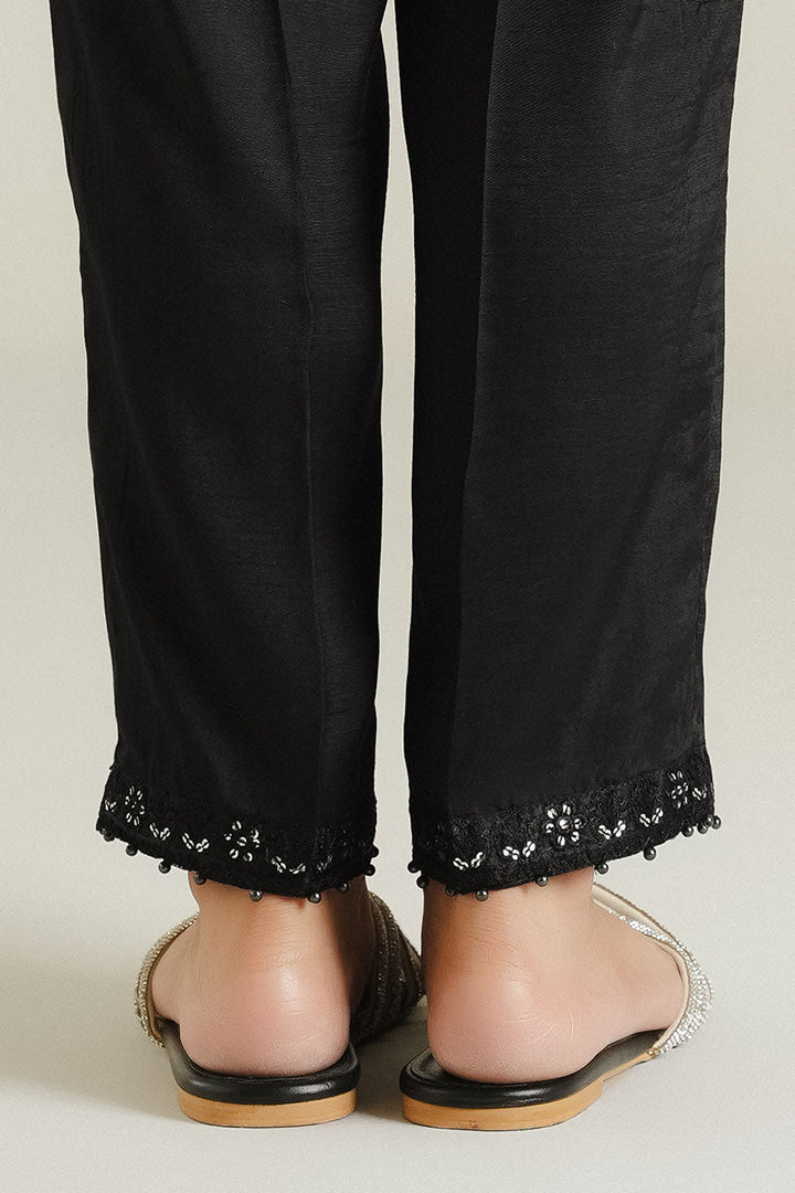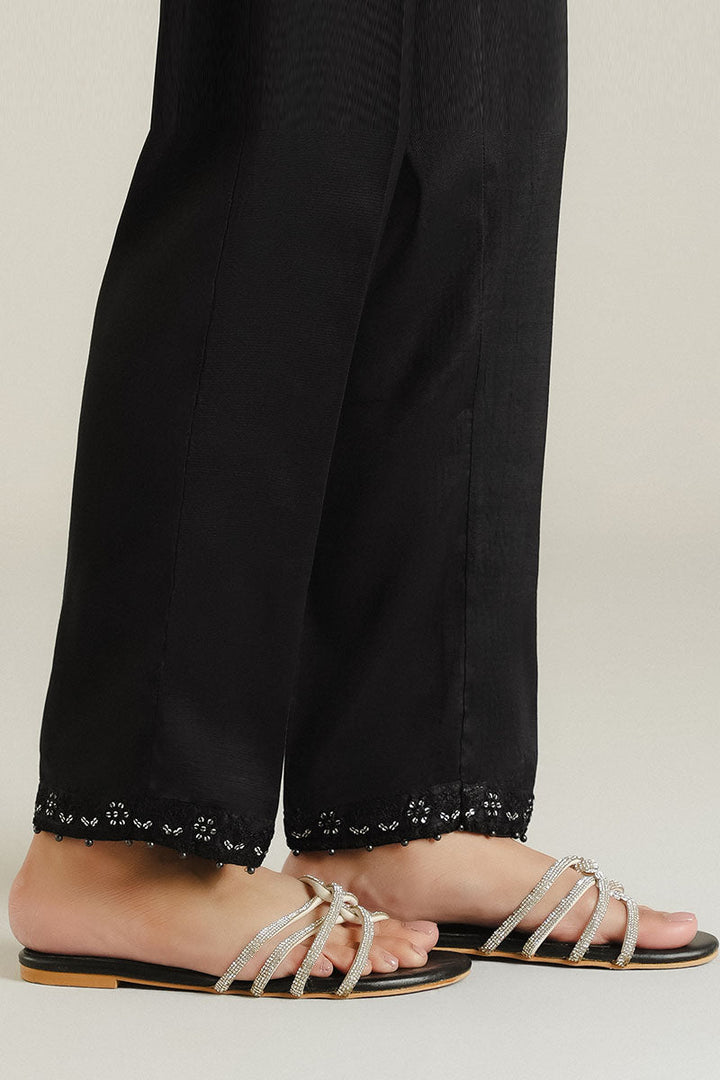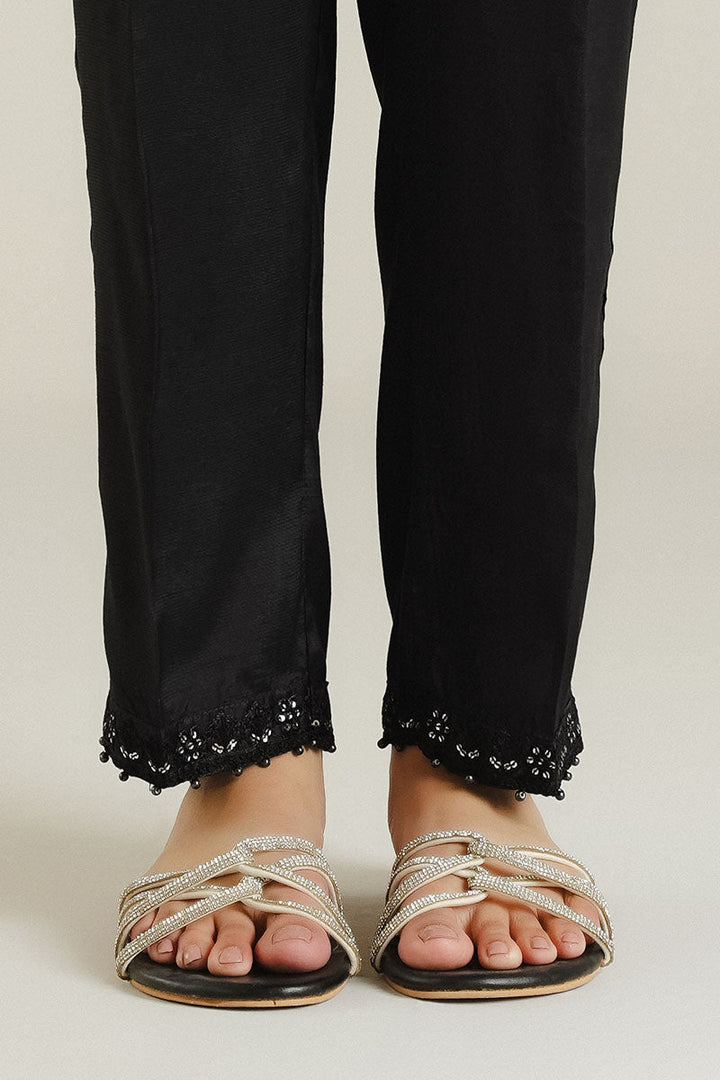 RAW SILK EMBROIDERED AND PEARL EMBELLISHED STRAIGHT FITTED PANTS