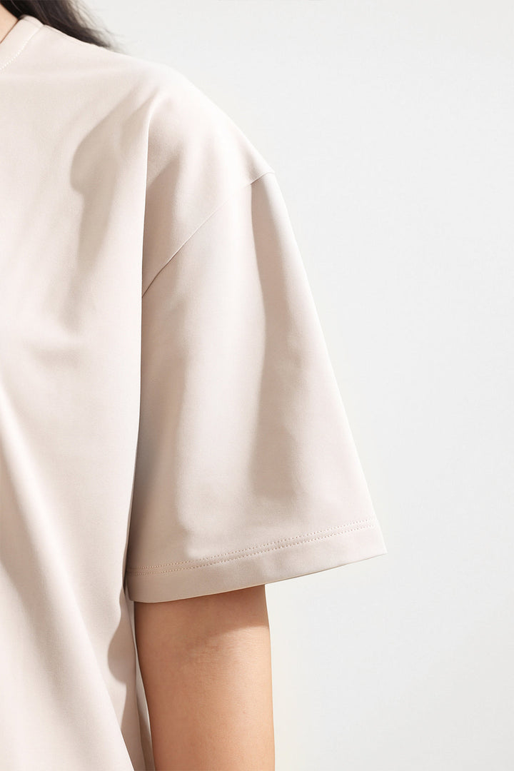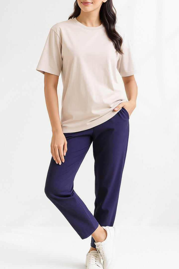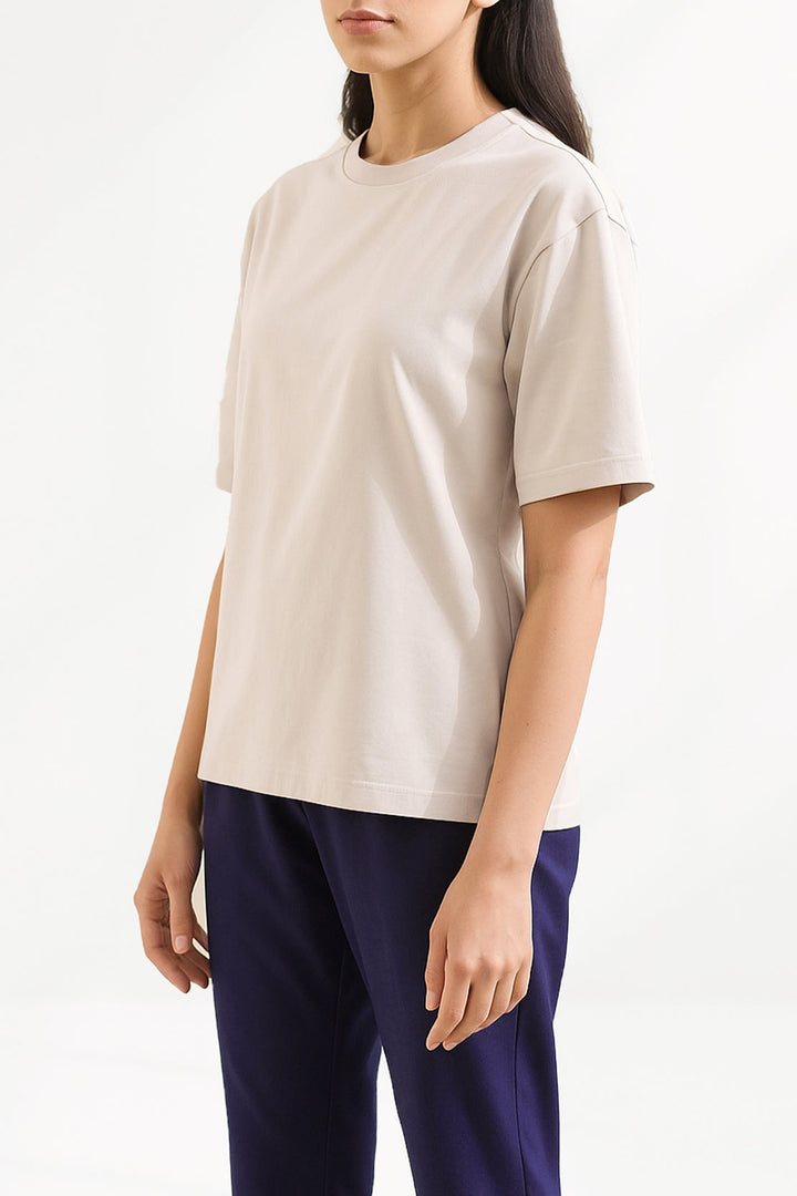 Introducing The “Drop Shoulder Tee – Soft Sand” By SAYA, A Perfect Blend Of Comfort, Style, And Subtle Sophistication. Crafted From Premium Scuba Fabric, This Tee Offers A Silky, Soft Texture With A Slight Stretch That Retains Shape And Structure Effortlessly. The Drop Shoulder Silhouette Brings A Relaxed, Contemporary Vibe, While The Clean Finish And Minimal Detailing Ensure Everyday Versatility. The “Soft Sand” Hue Adds A Gentle Warmth, Making It Ideal For Casual Wear, Layering, Or Transitional Dressing. A Thoughtfully Designed Wardrobe Essential That Balances Utility With Modern Fashion Appeal.