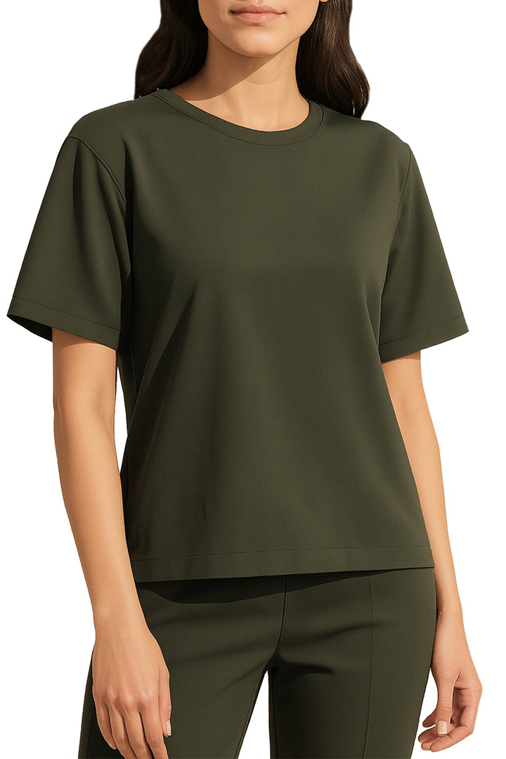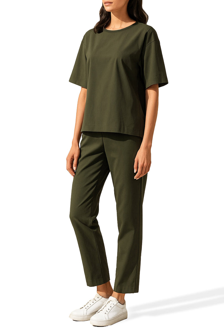 Redefine Off-Duty Style With The “Drop Shoulder Tee – Olive” By SAYA, Designed To Deliver Unmatched Ease With A Soft Color Palette. Cut From Smooth, Lightweight Cotton Jersey, This Tee Features A Relaxed Drop-Shoulder Silhouette That Exudes Contemporary Simplicity. The Gentle Olive Tone Adds A Subtle Pop Of Color, Making It A Stylish Essential For Everyday Wear, Whether Layered Or Worn Solo.