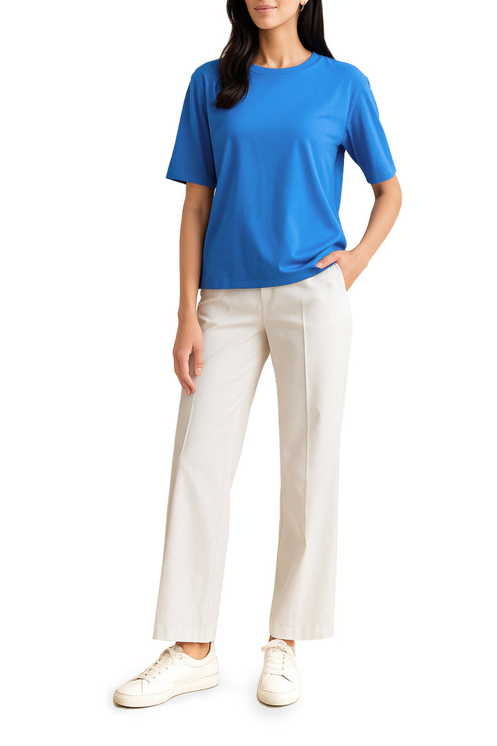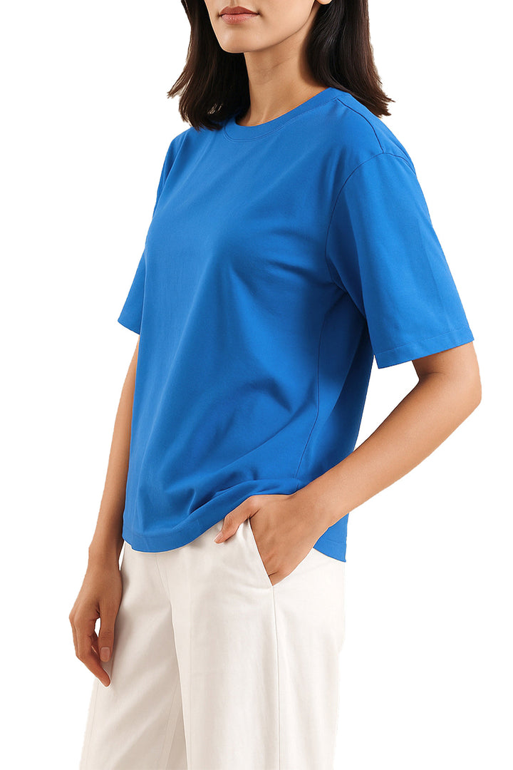 The “Drop Shoulder Tee – Power Blue” By SAYA Delivers Relaxed Styling With A Modern, Polished Twist. Expertly Tailored From Premium Scuba Fabric, This Tee Offers A Silky Soft Texture, Subtle Stretch, And Excellent Shape Retention. The Drop Shoulder Silhouette Adds A Casual, Effortless Feel, While The “Power Blue” Shade Introduces A Cool, Refined Hue That Elevates Everyday Wear. Designed For Versatility, It Transitions Seamlessly Between Solo Styling And Layered Outfits—Making It A Timeless Addition To A Well‑Edited Wardrobe.