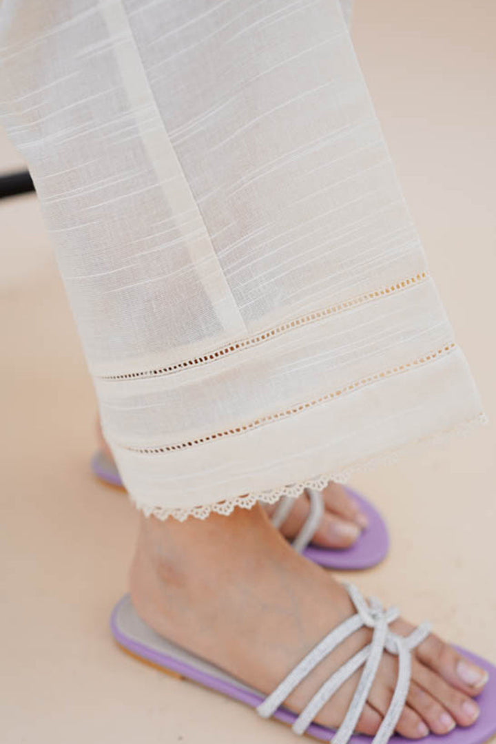 KHADDAR STRAIGHT PANTS WITH LACE DETAILS
