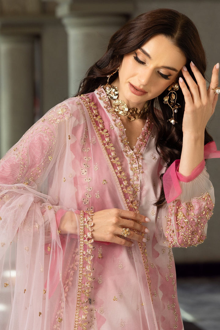 Pearl chiffon sleeve with addawork and printed motif finished with stitching detail
