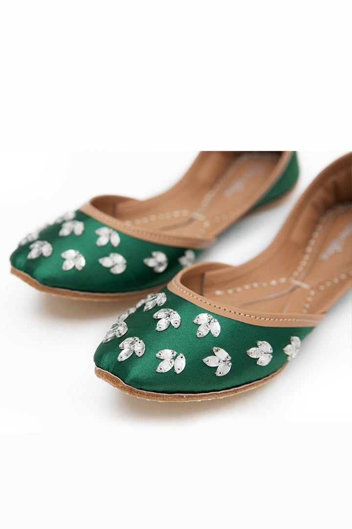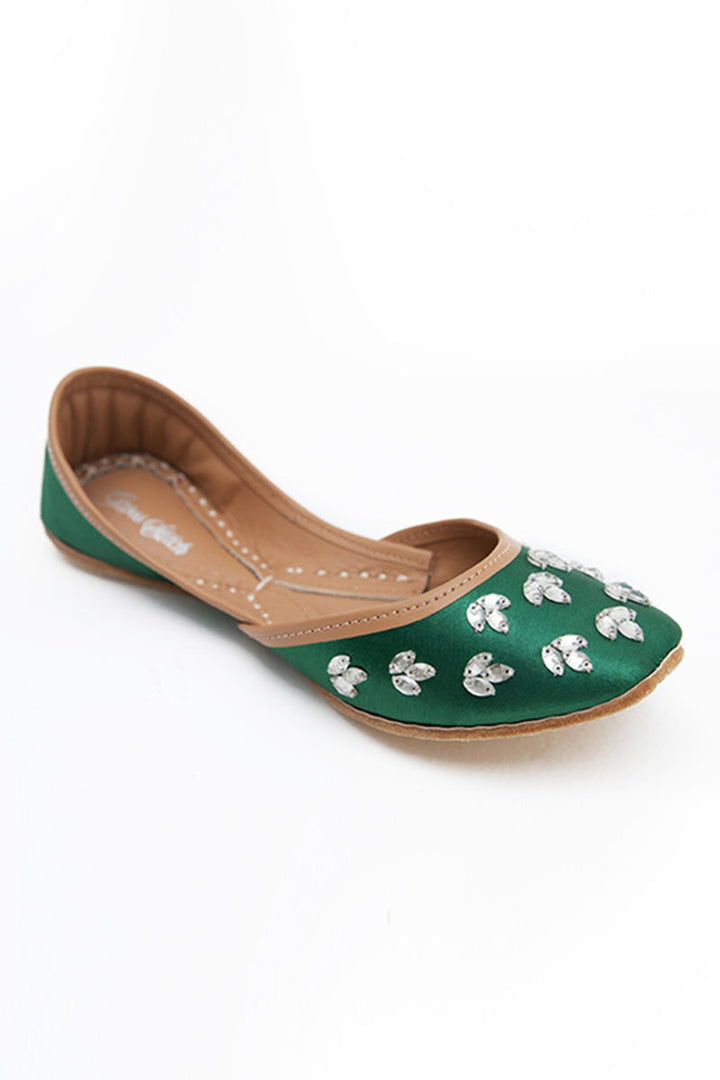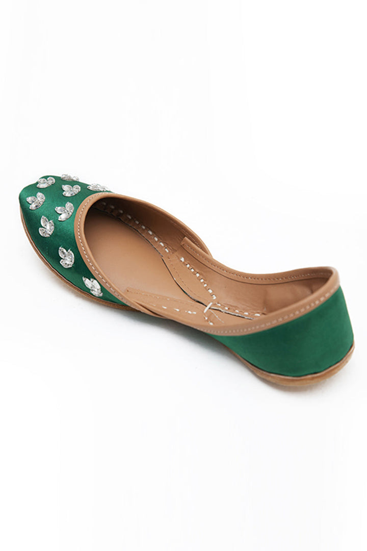 THIS ELEGANT GREEN KHUSSA IS LAYERED WITH AN AESTHETICALLY PLEASING DESIGN AND EMBELLISHED WITH CRYSTAL STONES. THIS SEASON, WEAR THIS KHUSSA WITH A VARIETY OF OUTFITS.