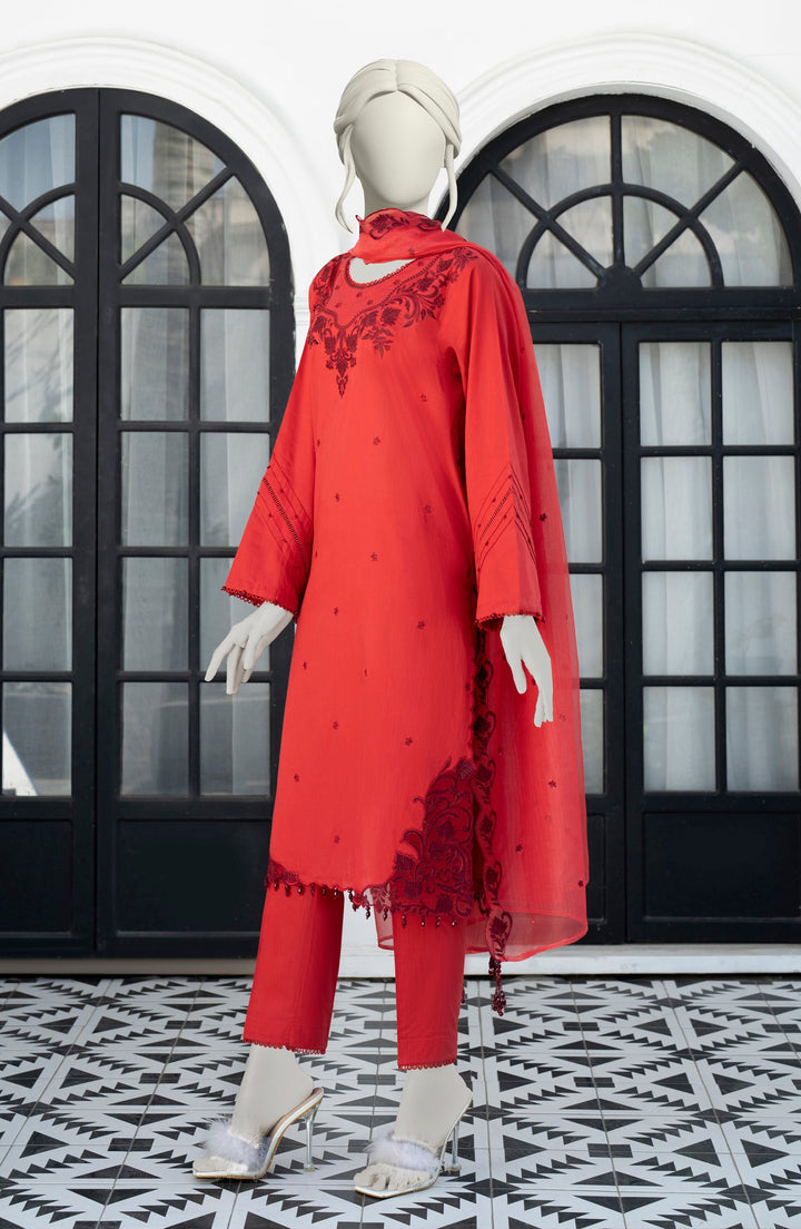EMBROIDERED CAMBRIC 3PCS UNSTITCHED