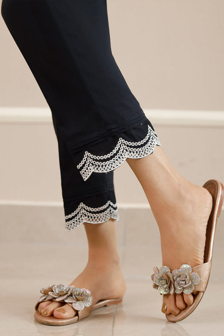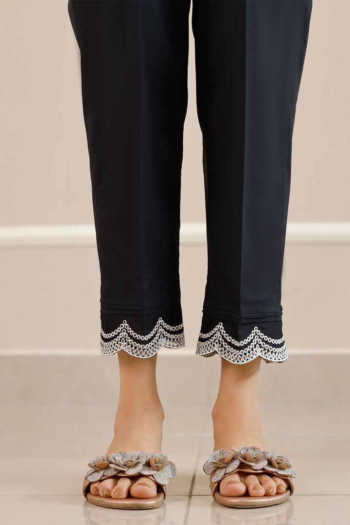 Enhance your wardrobe with Saya's Embroidered Cambric Pant, a perfect blend of comfort and sophistication. Crafted from premium-quality cambric fabric, these pants are lightweight and breathable, ensuring all-day comfort. The exquisite embroidery adds an elegant touch, making them suitable for both casual and formal occasions. With a tailored fit and versatile design, these pants are a timeless addition to your collection.