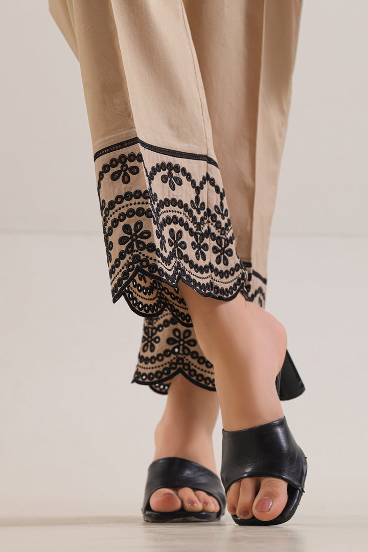 A Refined Ready-To-Wear Pant Crafted From Lightweight Premium Cambric That Delivers All-Day Comfort With Subtle Structure. Designed With Tailoring Ease, It Features Intricate Embroidery Along The Hemline, Offering Understated Sophistication Without Overstatement. This SAYA Pant Seamlessly Complements Both Casual Kurtas And Polished Tunics, Perfectly Balancing Everyday Wearability With Refined Craftsmanship.