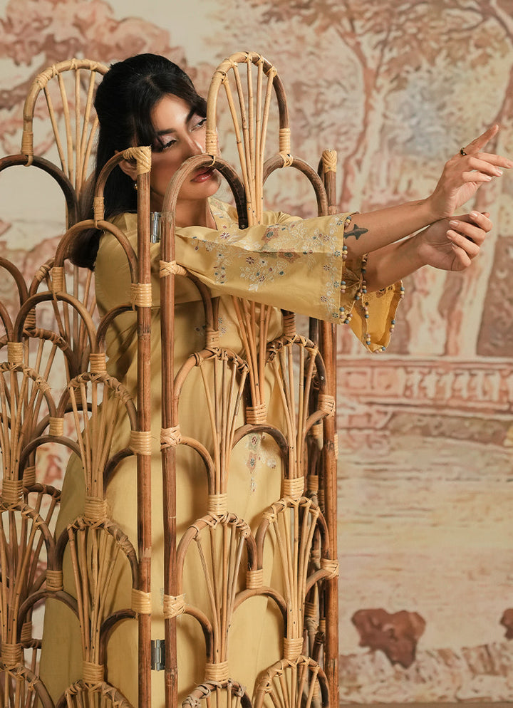 The Sand Cotton Embroidered Co-ord Set from our Spring The Tea '25 Collection features a straight silhouette, V neckline, embroidered sleeves, paired with embroidered izaars.