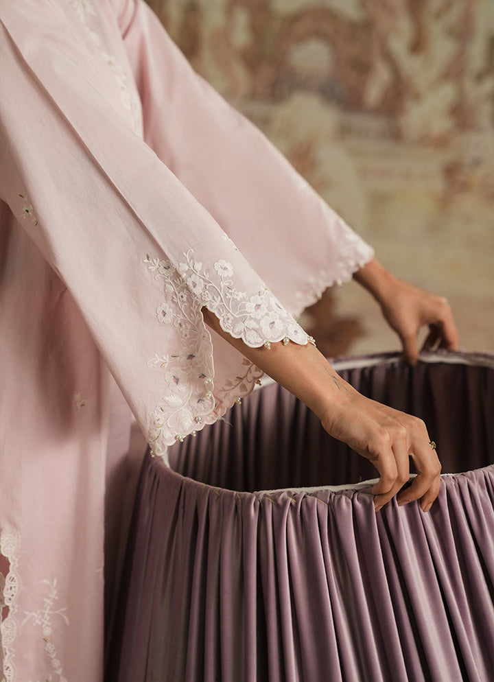 The Pink Cotton Embroidered Co-ord Set from our Spring The Tea '25 Collection features a straight silhouette, round neckline, full length embroidered sleeves, paired with embroidered izaar.