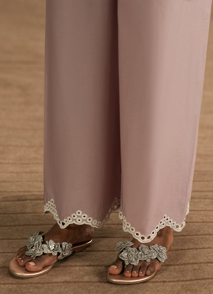 The Lilac Cotton Embroidered Co-ord Set from our Spring The Tea '25 Collection features a straight silhouette, round neckline with a slit, full length embroidered sleeves, paired with embroidered izaar.