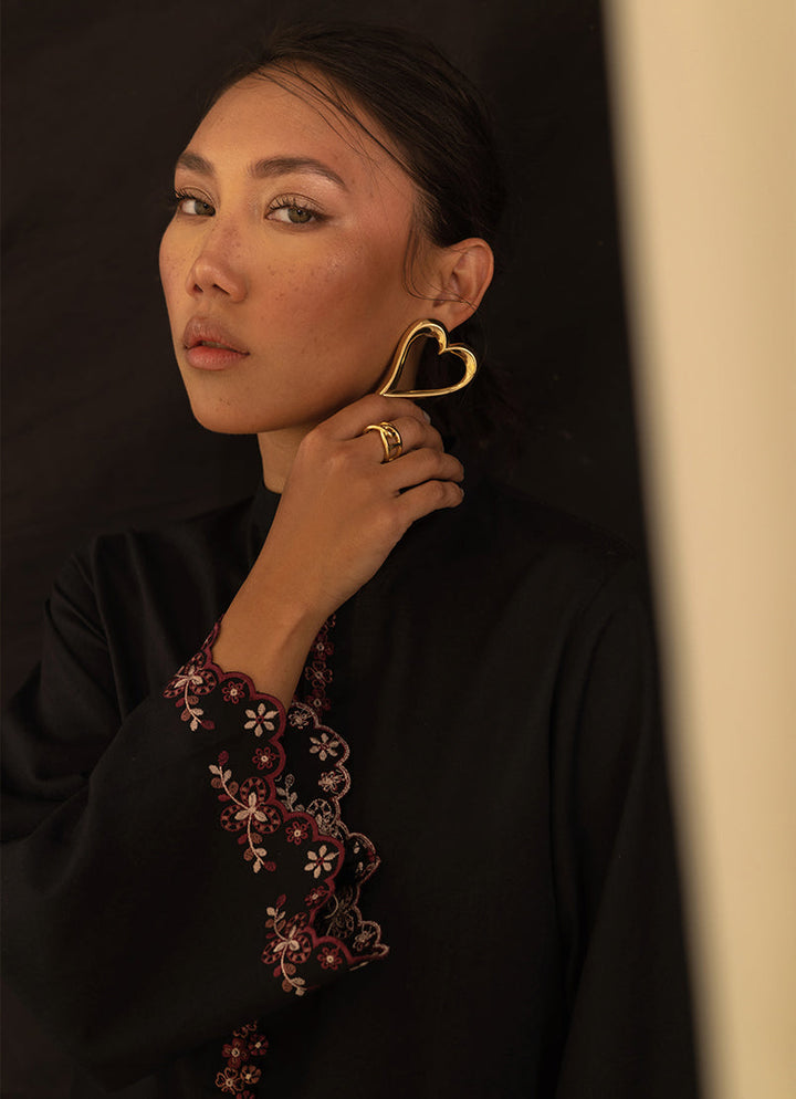 The Black Dobby/Linen Embroidered Co-ord Set from our Spring Collection '25 features an embroidered shirt with full length sleeves paired with a cutwork embroidered shalwar.