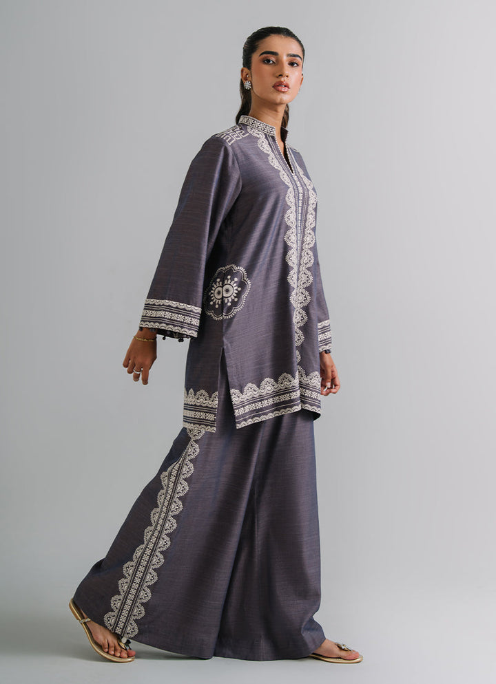 The Dark Brown Cotton Embroidered Co-ord Set from our Image Daily category features band collar & full-length sleeves paired with embroidered trousers.