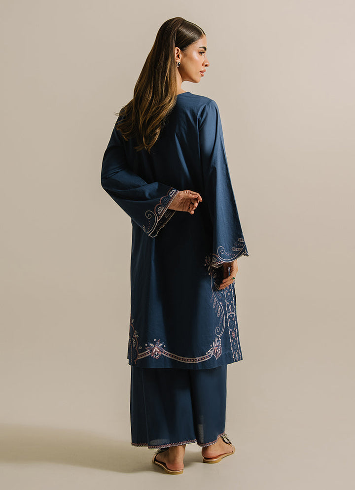 The Blue Cotton Embroidered Co-ord Set from our Image Signature category features a round neckline with a slit & full-length bell sleeves paired with embroidered trousers.