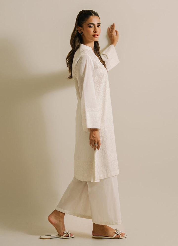 The White Cotton Embroidered Co-ord Set from our Image Signature category features a band collar & full-length bell sleeves paired with embroidered trousers.