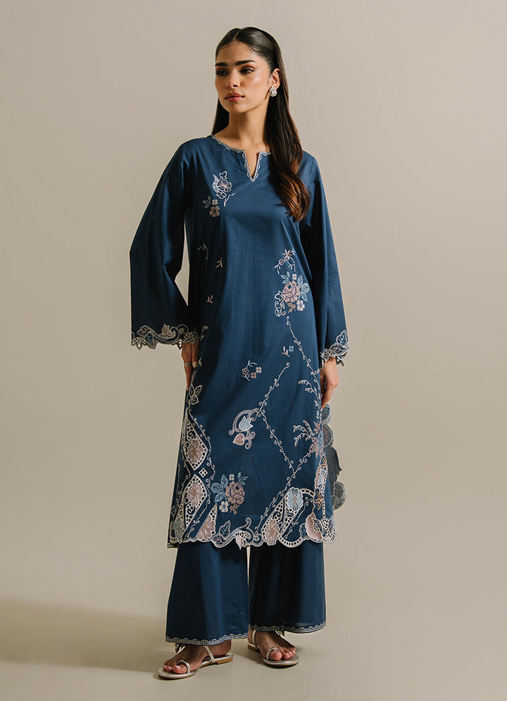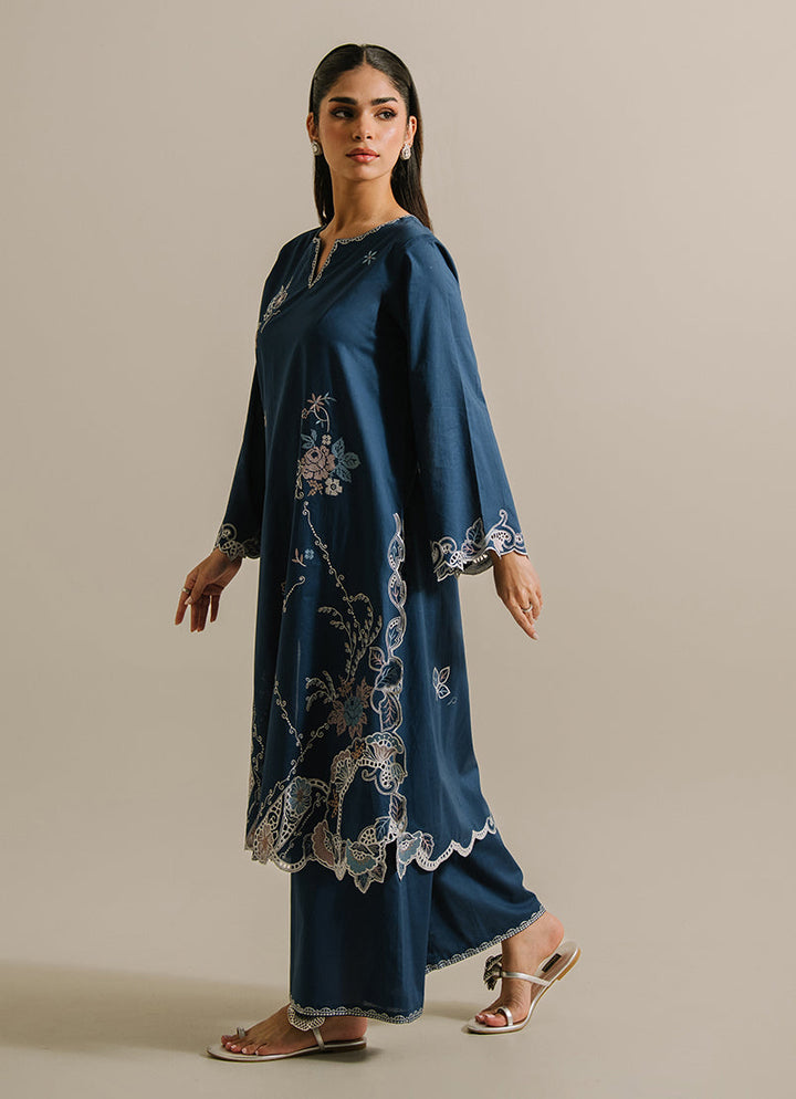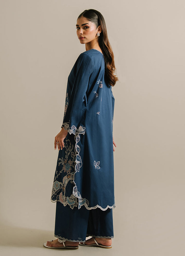 The Blue Cotton Embroidered Co-ord Set from our Image Signature category features a round neckline with a slit & full-length bell sleeves paired with embroidered trousers.