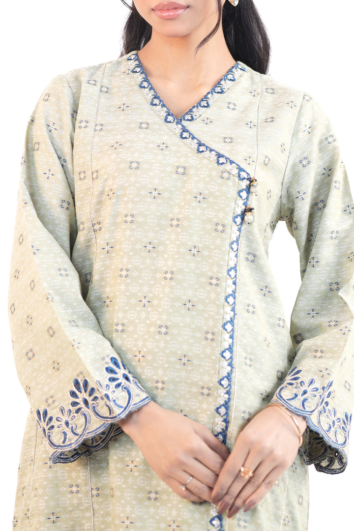Add a touch of sophistication to your look with this Embroidered Cotton Jacquard Stitched 2-Piece, featuring an elegantly embroidered shirt paired with a matching trouser. Crafted from premium cotton jacquard, it combines comfort and style, perfect for semi-formal occasions.