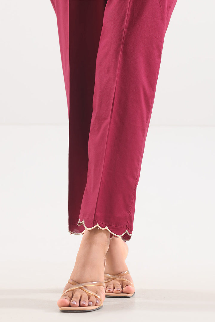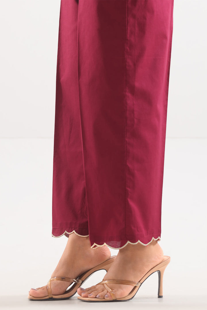 Embroidered Cotton Pant By SAYA Comes In A Maroon. Made From Premium 100% Cotton, It Boasts Elegant Embroidery Along The Hem And Sides, Delivering Subtle Style. The Straight Cut And Soft Texture Ensure Comfort And Versatility. Perfect For Pairing With Kurtas, Shirts Or Festive Tops, This Pant Balances Utility With Refined Detailing—An Essential For Both Formal & Casual Looks