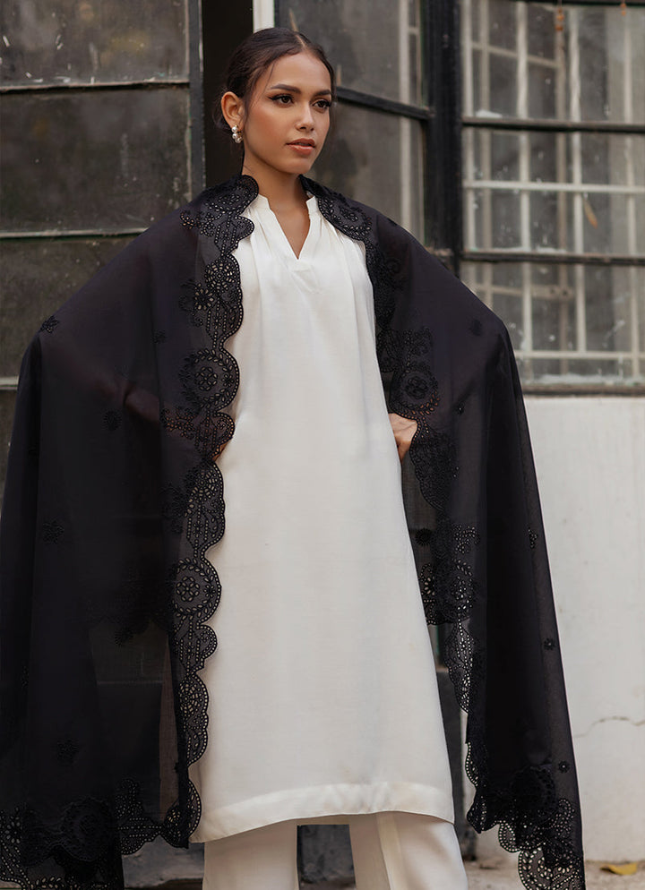 A White Cotton Embroidered Dupatta featuring delicate motifs and cutwork embroidered hems.