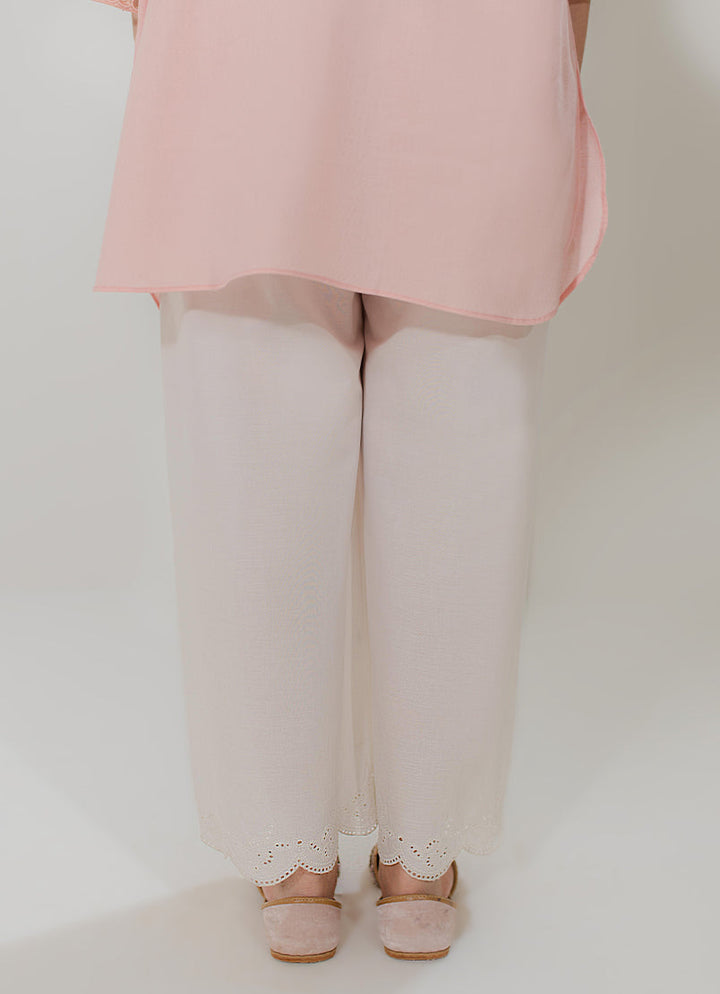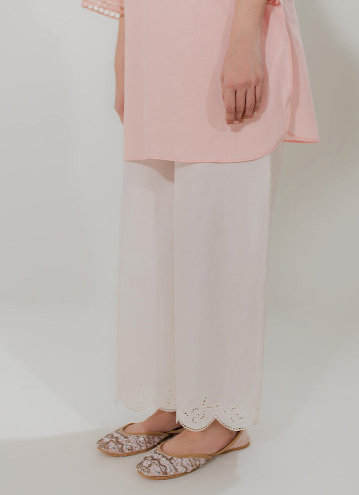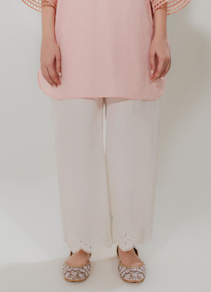 The White Embroidered Izaar from Spring Pret '25 Collection features a straight fit & scallop cutwork embroidery.