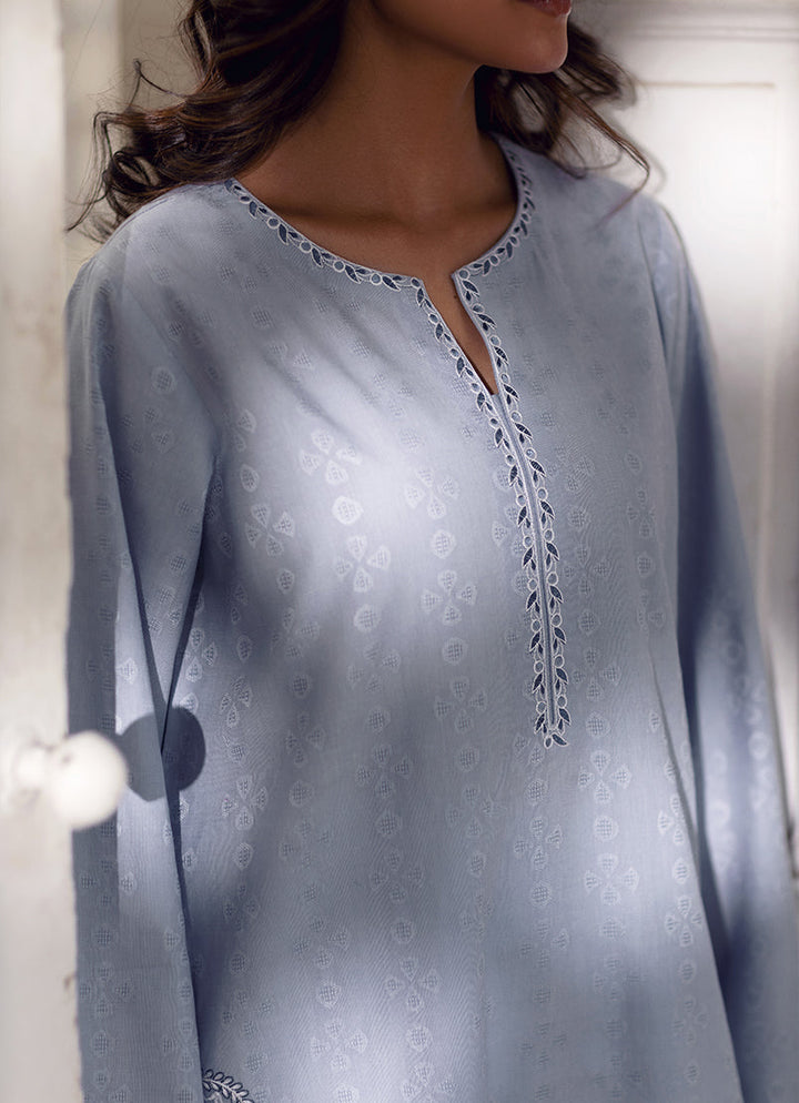 The Lavender Embroidered & Kurta from Summer Essence '25 Collection, features an Embroidered shirt with round neckline with a slit & full-length sleeves.