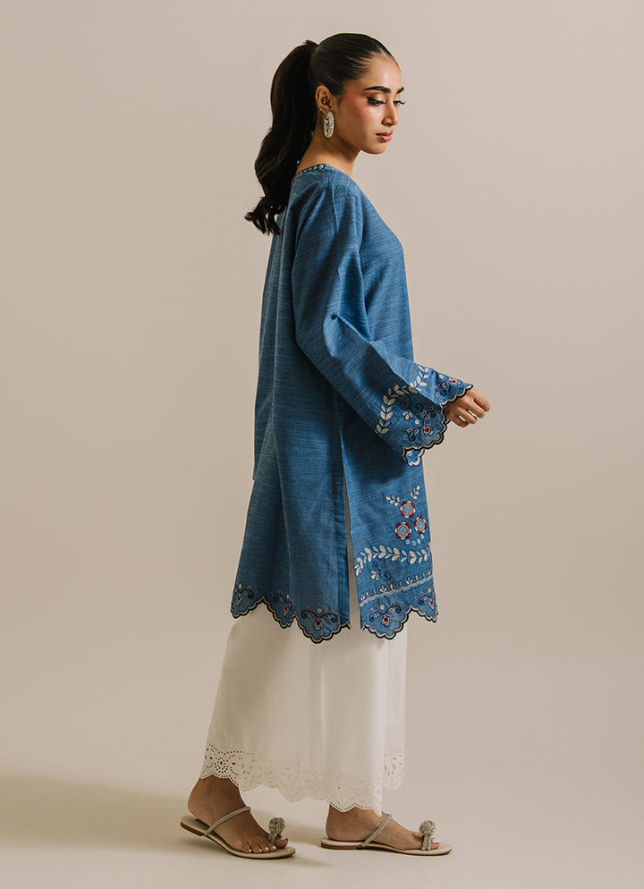 The Blue Yarn Dyed Embroidered Kurta from our Image Daily category features V neckline & full-length bell sleeves.
