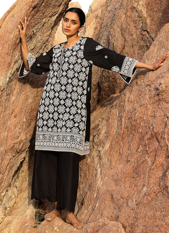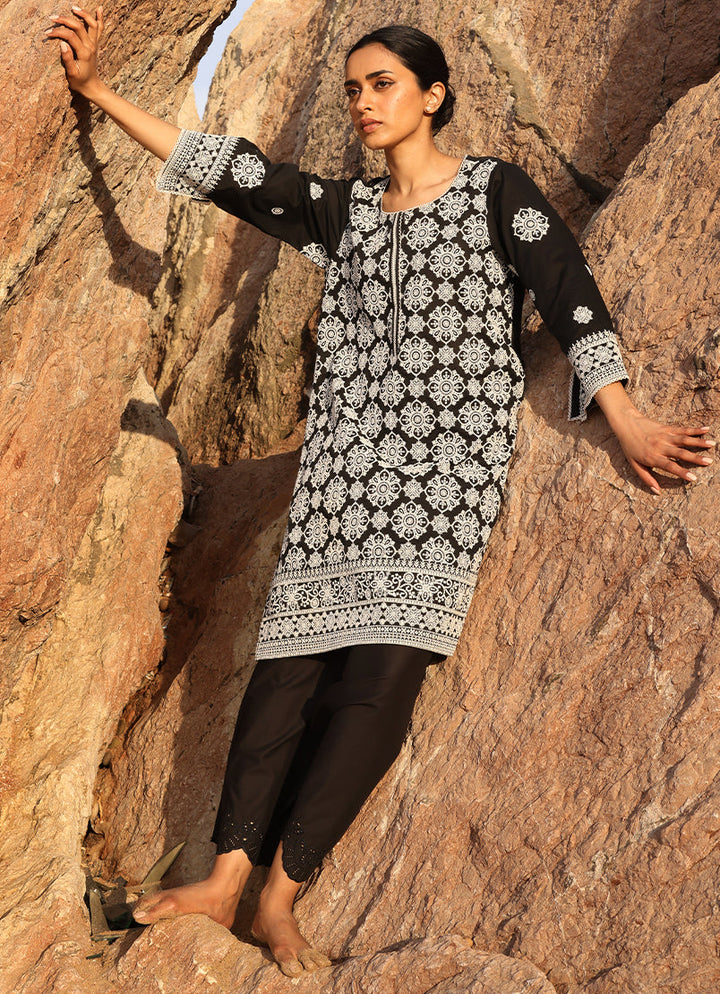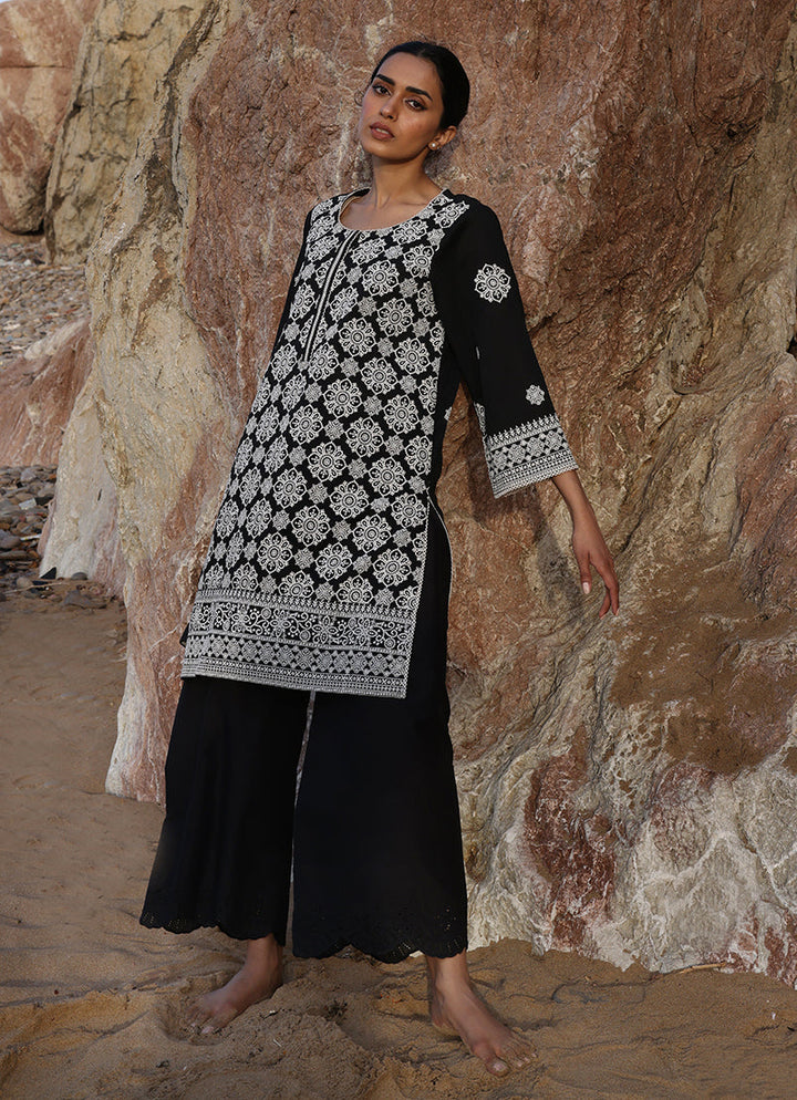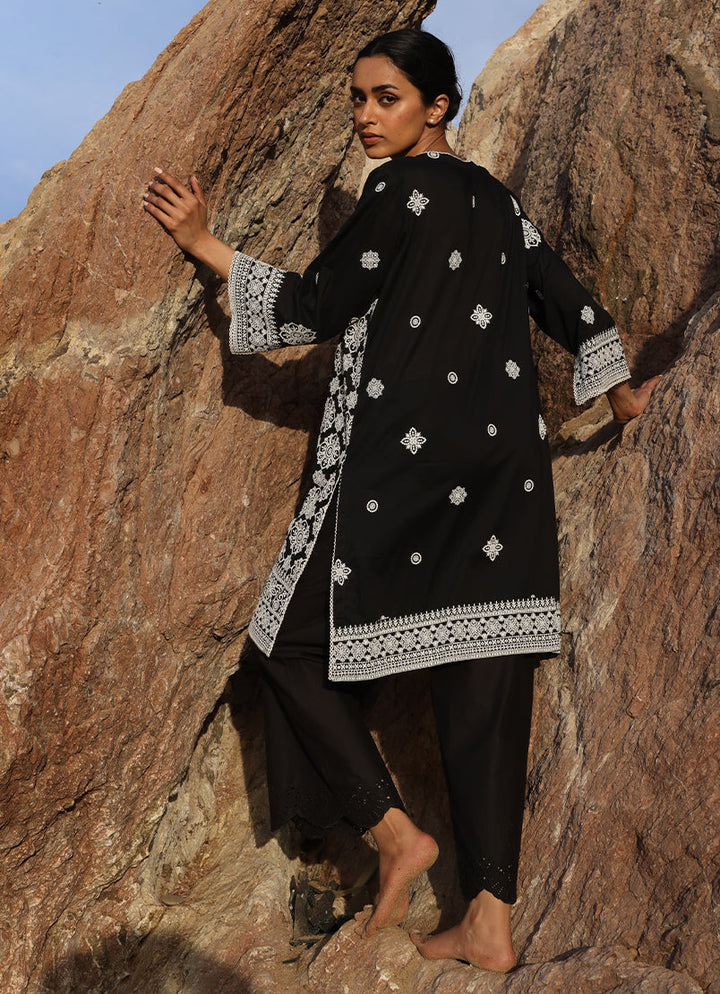 The Black Cotton Embroidered Kurta from Spring Pret '25 features an embroidered shirt with round neckline with a slit and full length sleeves.