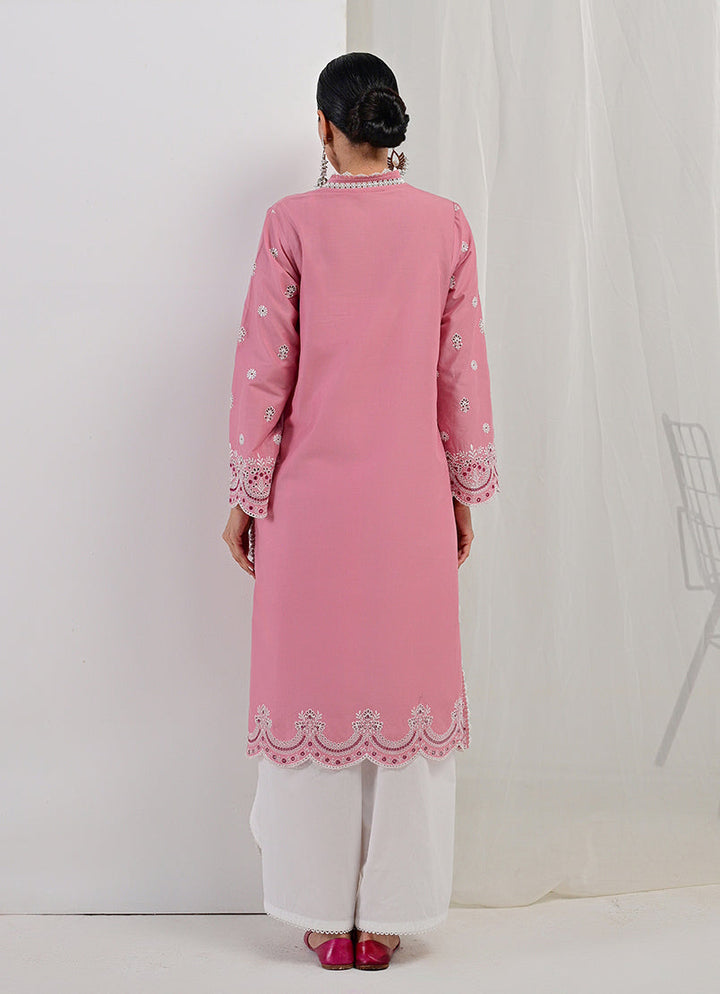 This Peach Pure Cotton Embroidered Kurti from our Spring Staples '25 Collection features a straight silhouette, V neckline, and full-length embroidered sleeves.