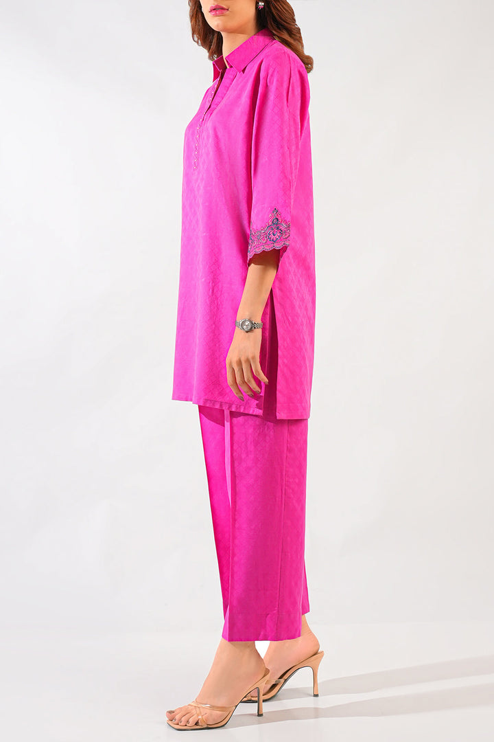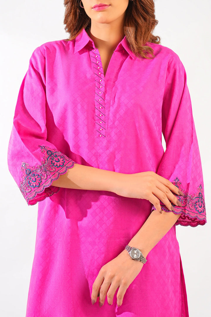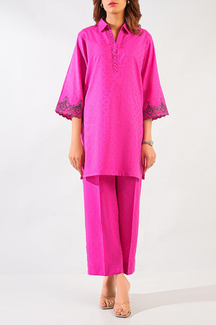 Enhance your ensemble with Saya’s pink Embroidered Lawn Jacquard Stitched 2‑Piece. This ready‑to‑wear set features a premium lawn jacquard shirt with refined embroidery and matching stitched trouser. It delivers breathable comfort and timeless elegance for casual to semi‑formal occasions.