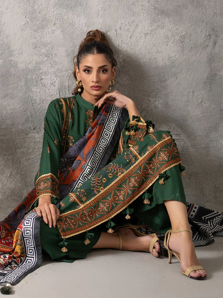 3PC UNSTITCHED EMBROIDERED LUXURY COTTEL SUIT
