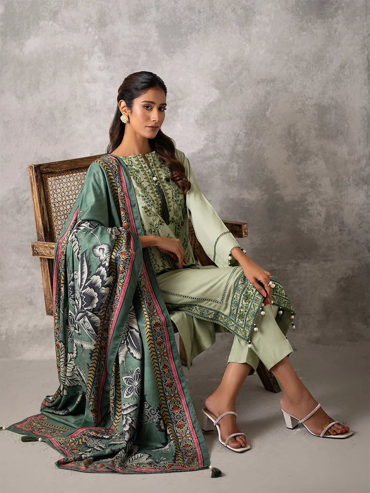 3PC UNSTITCHED EMBROIDERED LUXURY COTTEL SUIT