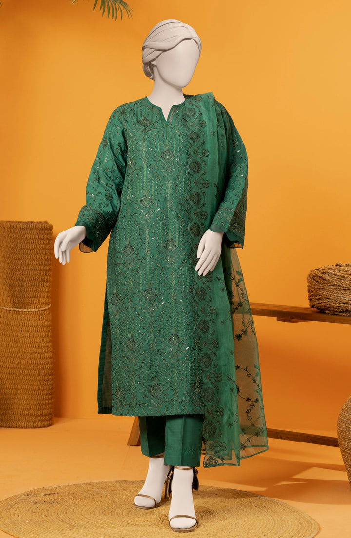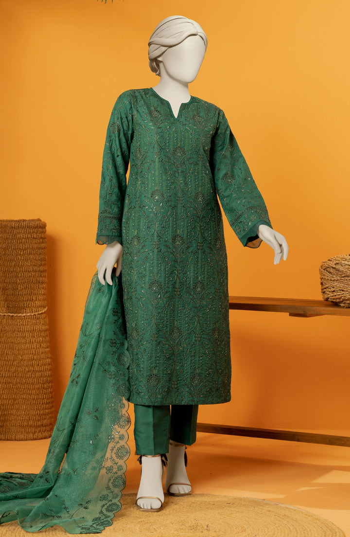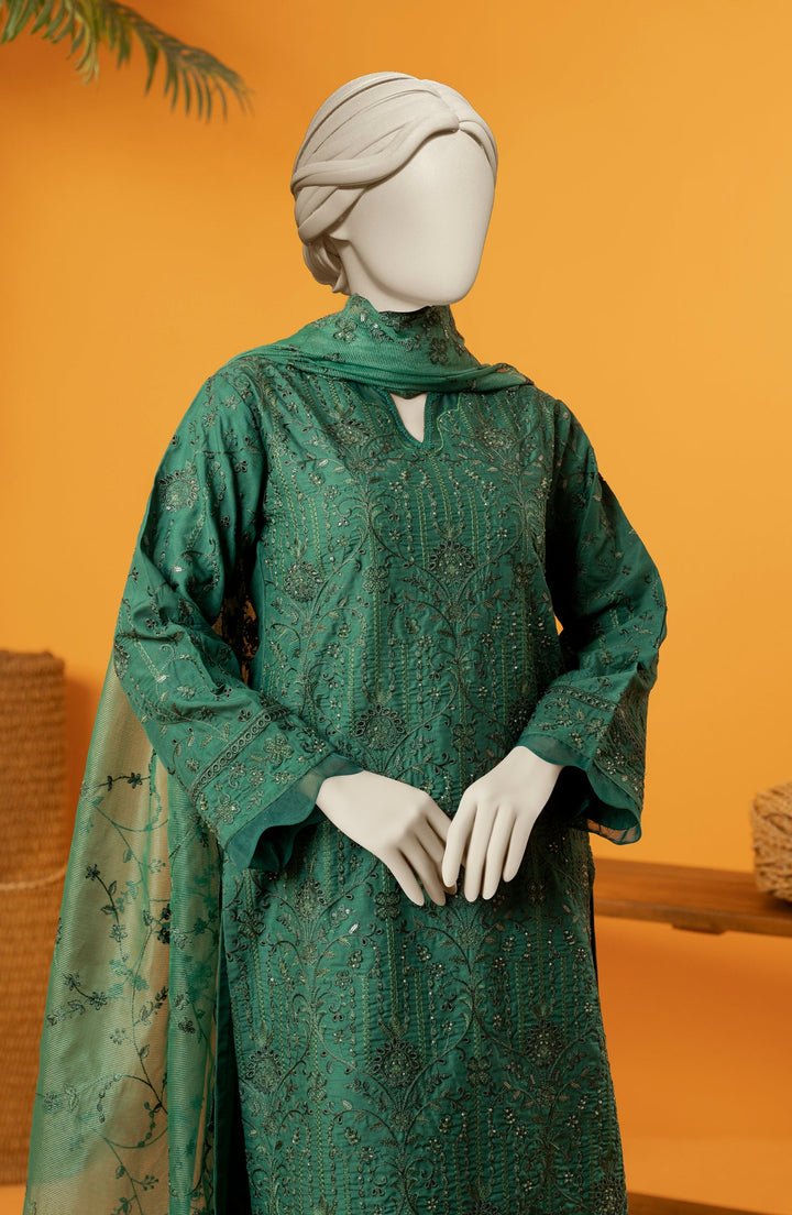 EMBROIDERED RAW SILK 3 PCS UNSTITCHED