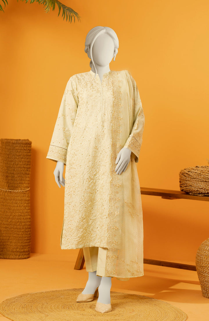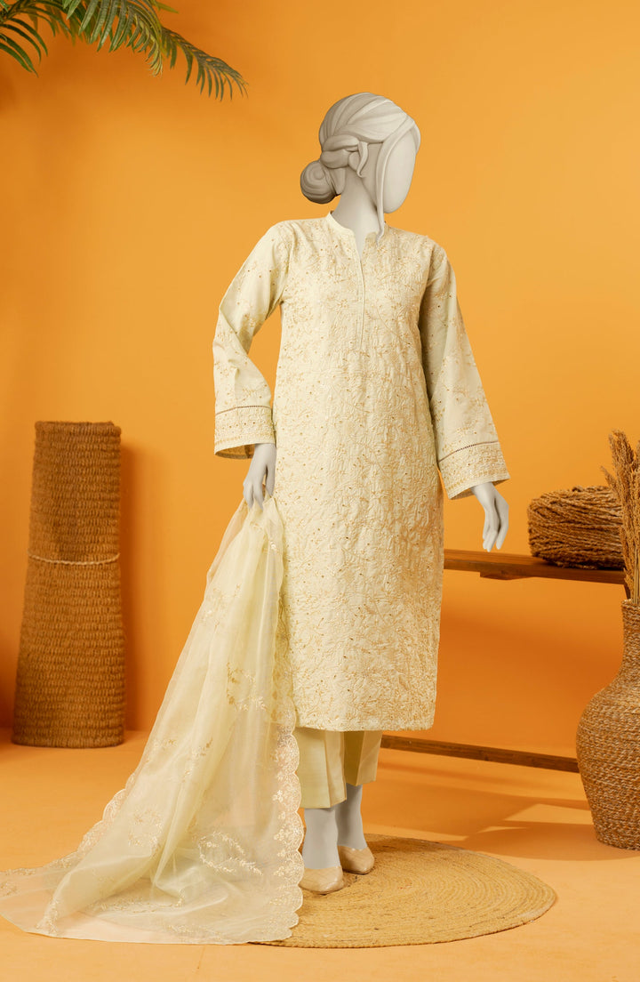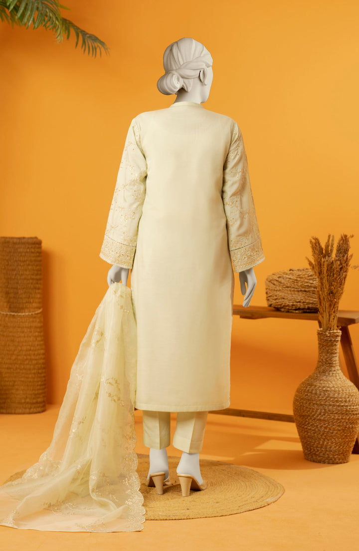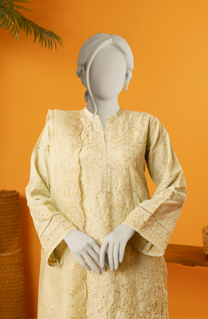 EMBROIDERED RAW SILK 3 PCS UNSTITCHED