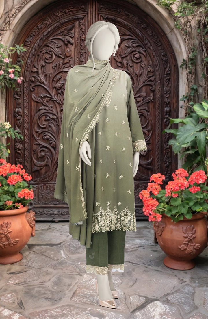 EMBROIDERED TWILL VISCOSE 3 PCS UNSTITCHED