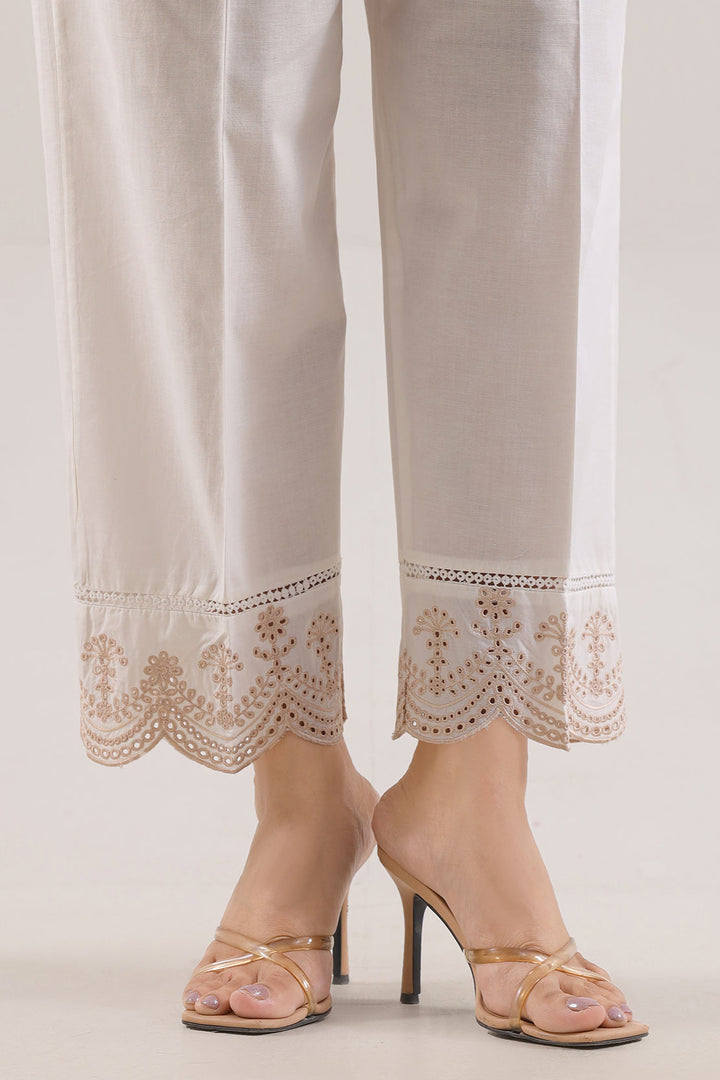 Elevate your everyday essentials with Saya’s Embroidered Cambric Pant . Crafted from breathable cambric fabric, this stitched pant features minimal embroidery for a polished look. Ideal for pairing with kurtas or tunics, it blends comfort with understated elegance—perfect for women shopping embroidered pants online in Pakistan.