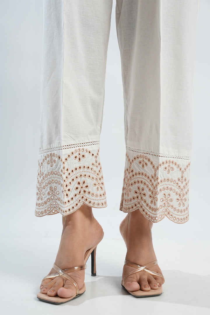Elevate your wardrobe with Saya's Embroidery Cambric Pant in a classic white hue. Crafted from premium cambric fabric, these ready-to-wear pants offer both comfort and elegance. Perfect for casual outings and semi-formal gatherings, they reflect Saya's commitment to quality and contemporary design.