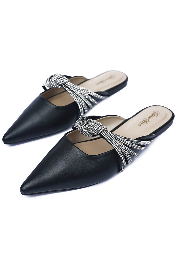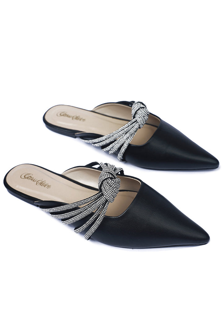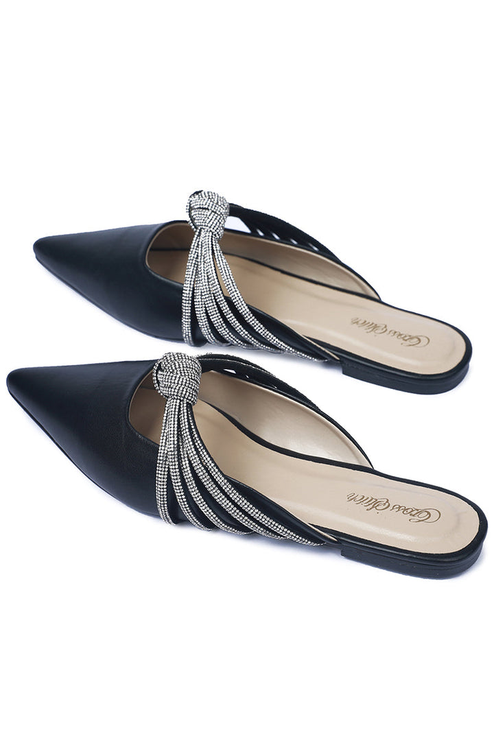 A contemporary take on flats, the black toned Evander comes with sequined straps and a cute little knot to compliment your daily looks.