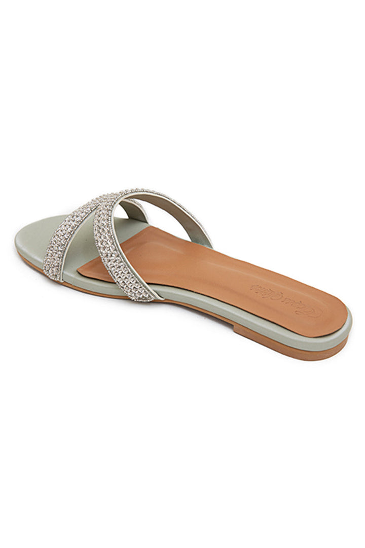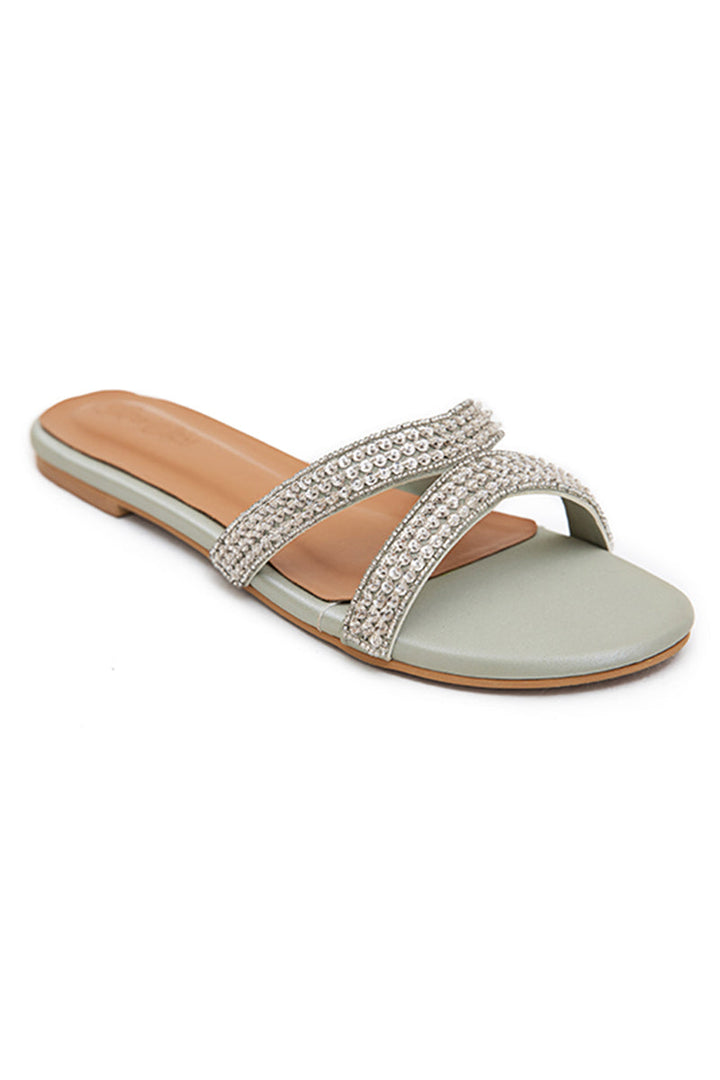 EXRA-1 Flats are expertly crafted by hand, featuring beautiful embellishment work. Made with high-quality PU material, these flats are both durable and stylish. The padded insocks provide ultimate comfort, while the sheet outsole offers stability and longevity. Perfect for any occasion, these flats are a must-have for any wardrobe.