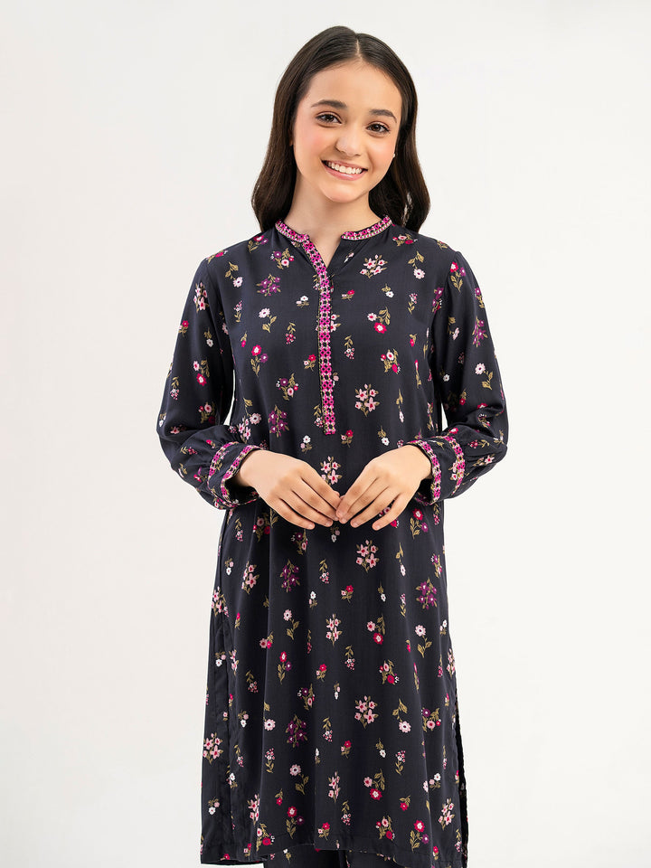 - Printed shirt with embroidery and pleats detailing on sleeve with cuff patti