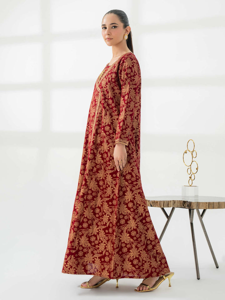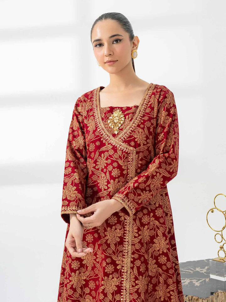 - Gold paste print embroidered angrakha with gotta embellished motif