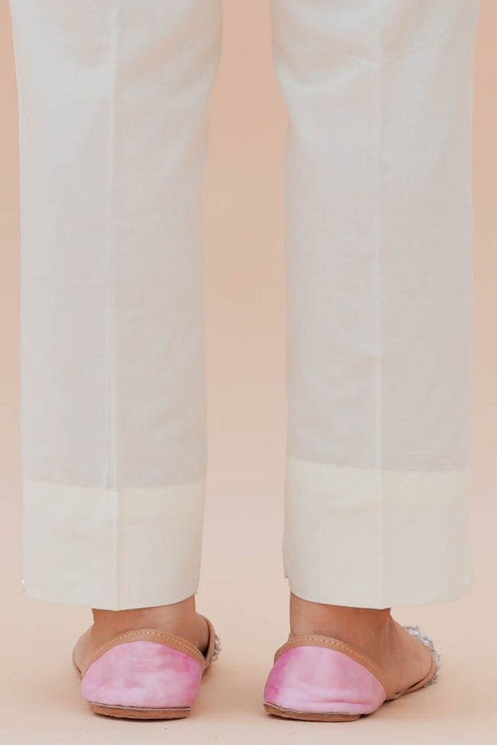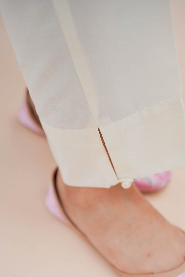 STRAIGHT FIITED CAMBRIC PANTS SLIT OPENING WITH PEARL BUTTON