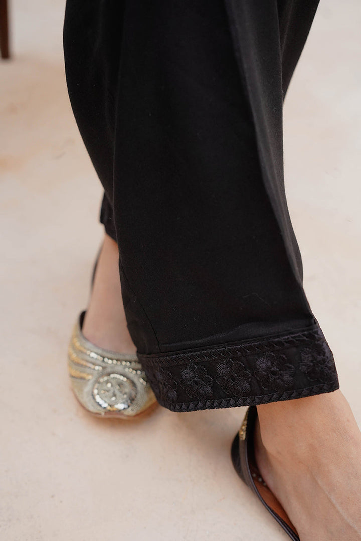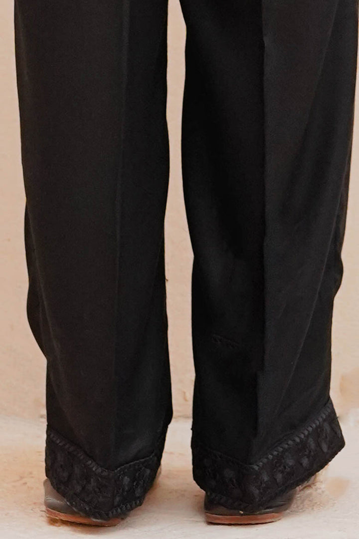 STRAIGHT LINEN SEQUIN EMBROIDERED PANTS