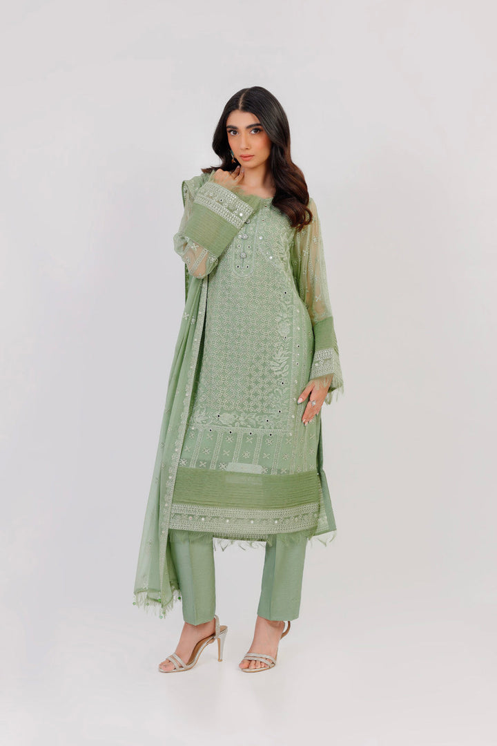 Dyed Embroidered Bamberg Chiffon Shirt 3 Meters