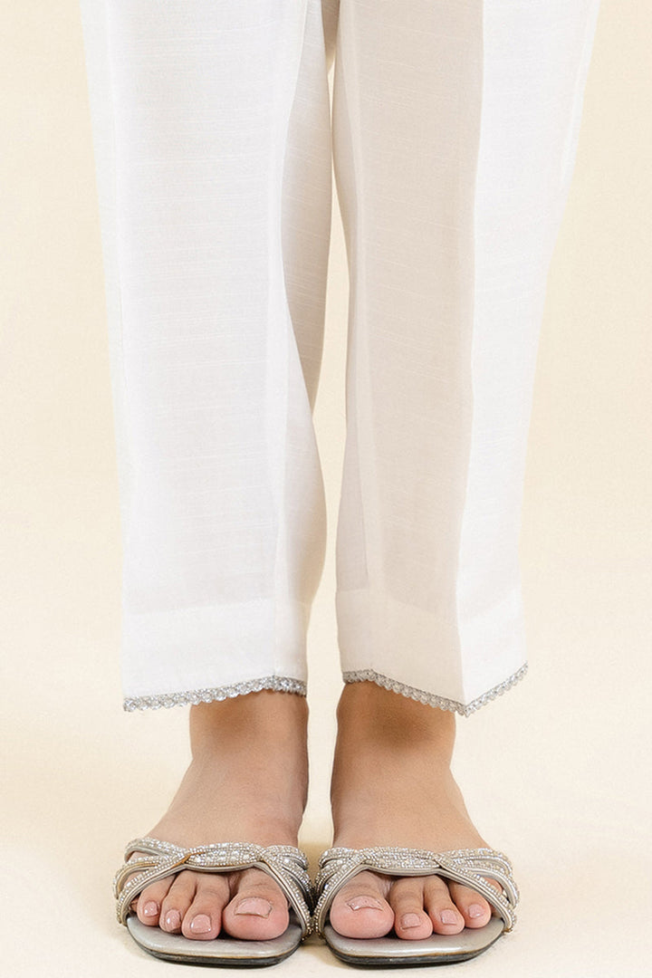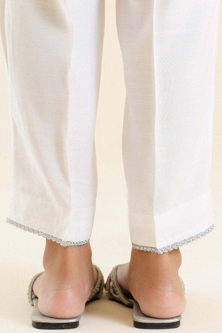 STRAIGHT FITTED SILK PANTS WITH LACE FINISH