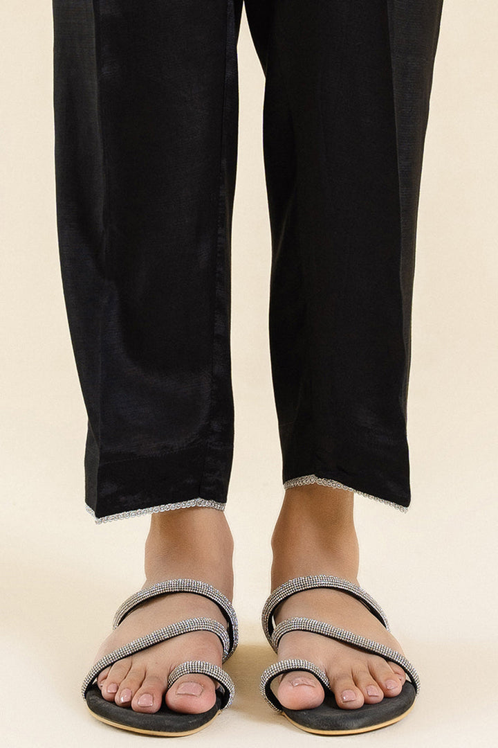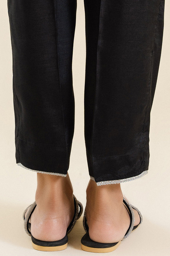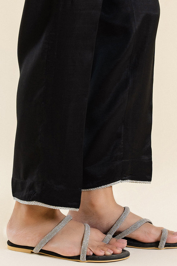 STRAIGHT FITTED SILK PANTS WITH LACE FINISH