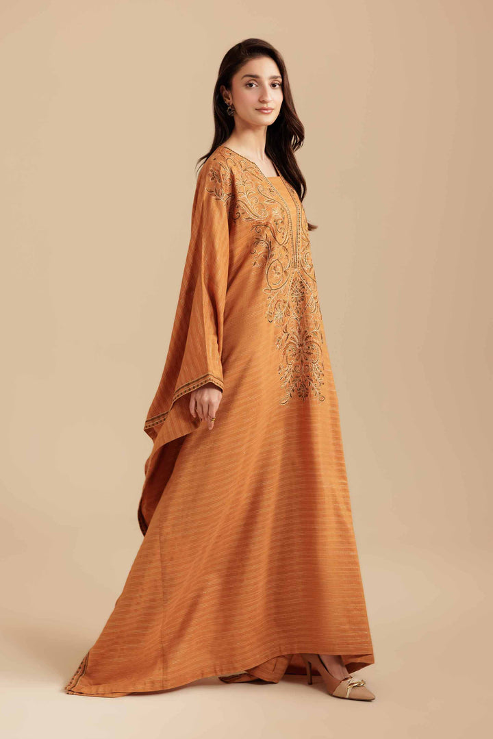 Elevate your Winter wardrobe with this embroidered kaftan from the latest Pret Winter Collection, combining bold prints, lightweight fabric, and effortless elegance for a fresh seasonal look.