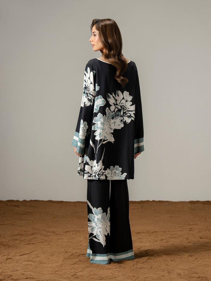 - Printed wide-leg trousers with elasticized waistband