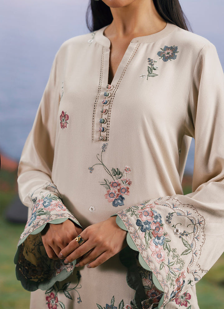 Golnar in Ivory/Green from our Winterkari '25 Collection. An embroidered twill viscose 3pc unstitched outfit.