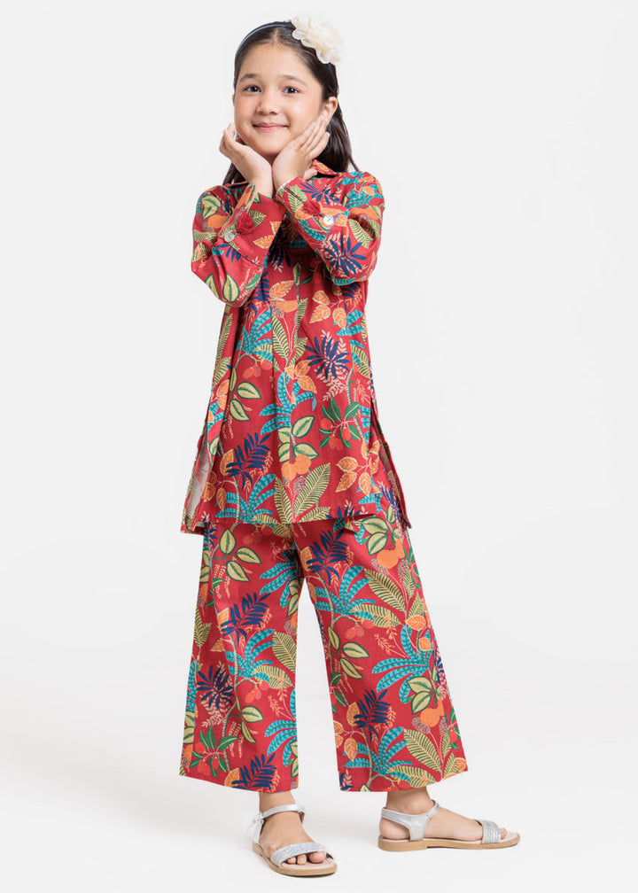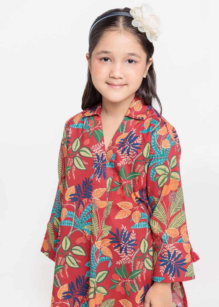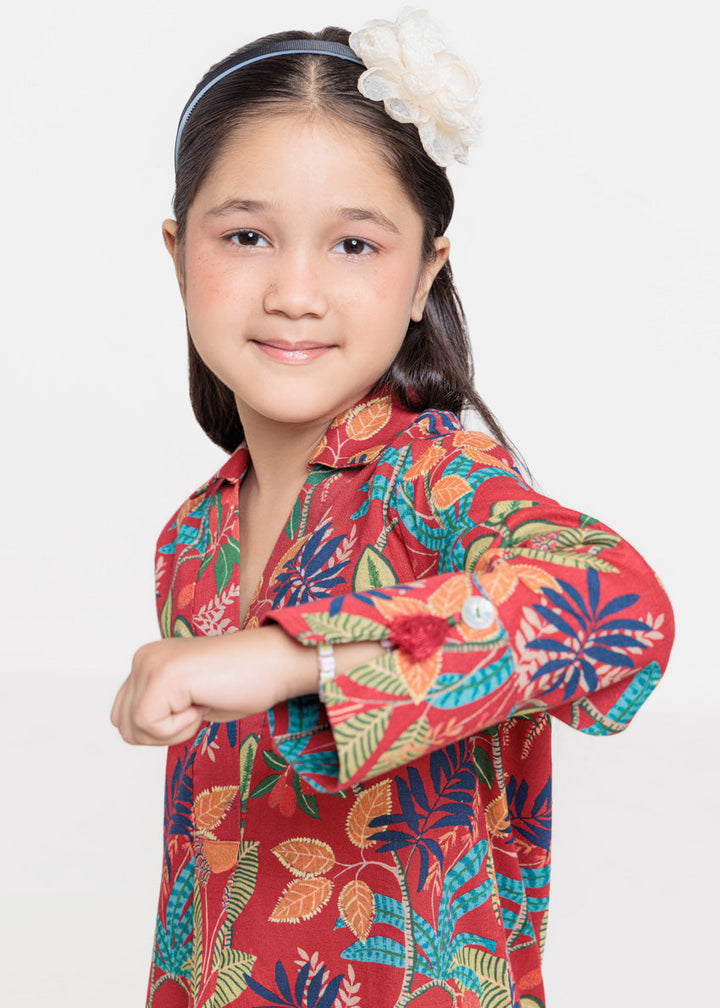 Printed Slub Red Tunic Style Shirt.