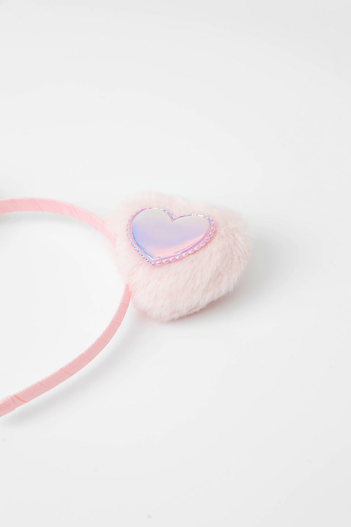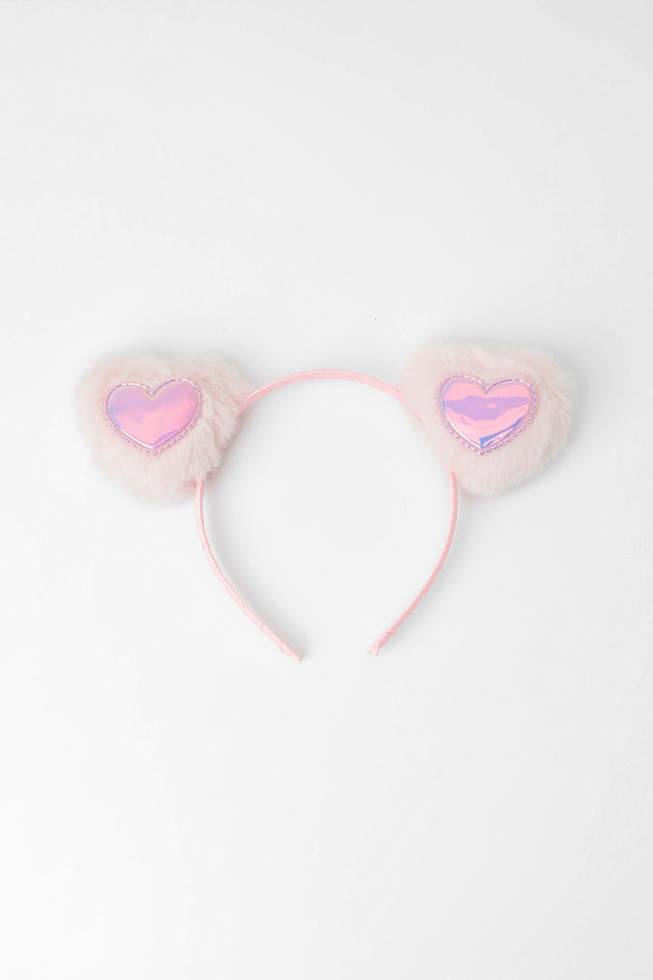 A mesmerizing design is portrayed on this trendy hair band crafted in an adorable silhouette with heart silhouette at top. Illustrated in a classy powder pink hue with glossy details, add this contemporary hair band to your girls accessories collection.