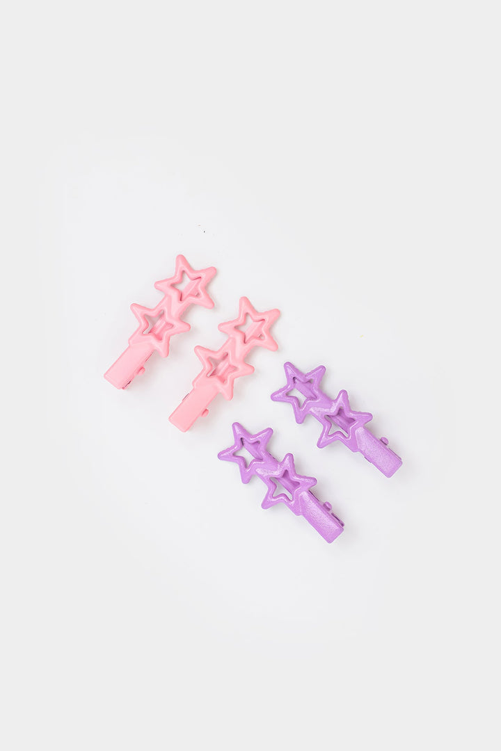 Add a unique touch to your hairstyle with pink and purple pins, which are adorned with charming stars, adding a fun and playful element to any look. Perfect for adding a pop of color and sparkle to your kids hair.